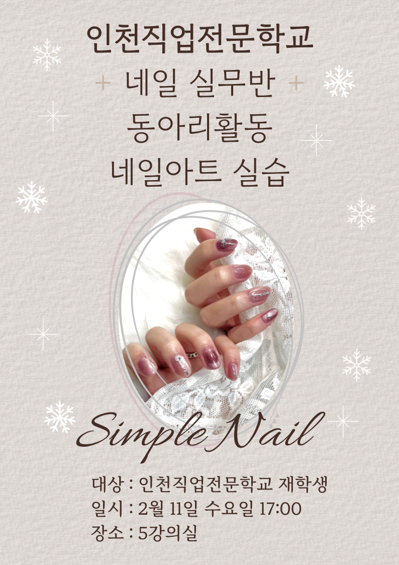 재학생을 대상으로 네일 실무반 동아리 활동(네일아트 실습)을